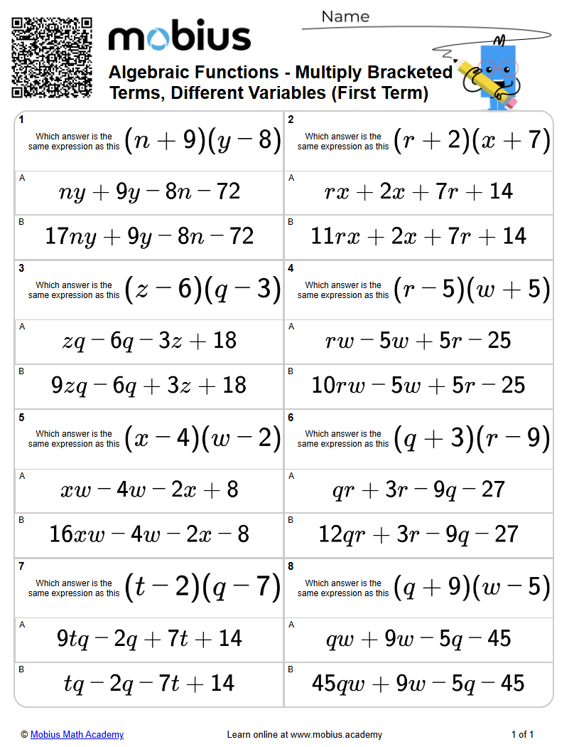 Algebraic Functions - Multiply Bracketed Terms, Different Variables ...