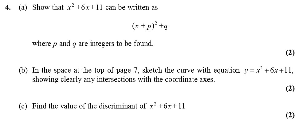 A-Level Edexcel Maths Pure Graphs of Functions: 4. (a) Show that $x^2 ...