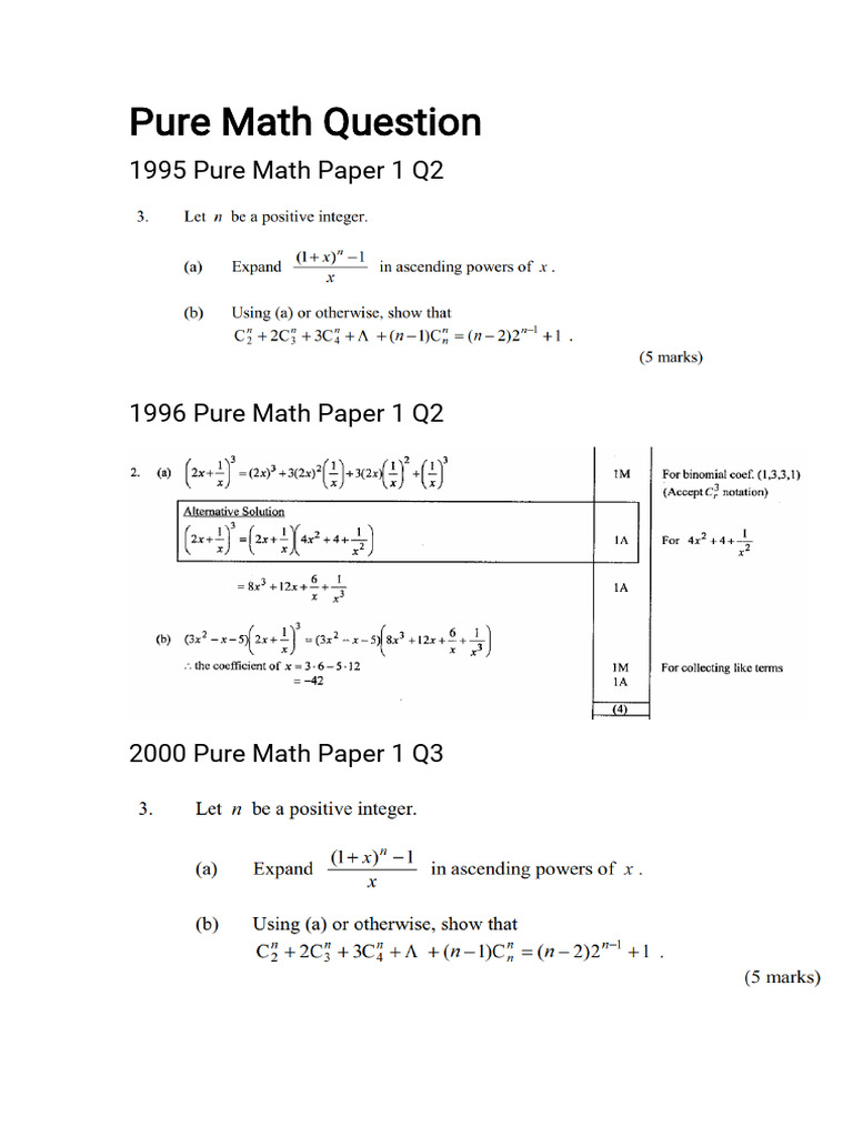 Pure math questions - Revision on pure math Important questions ...