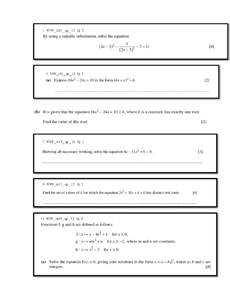 Pure Maths Topical Questions | PDF | Equations | Quadratic Equation