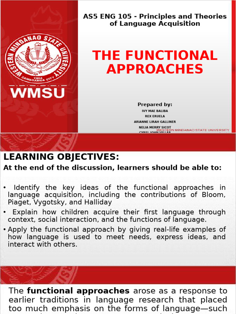 Group 4 - The Functional Approaches | PDF | Learning | Language Acquisition
