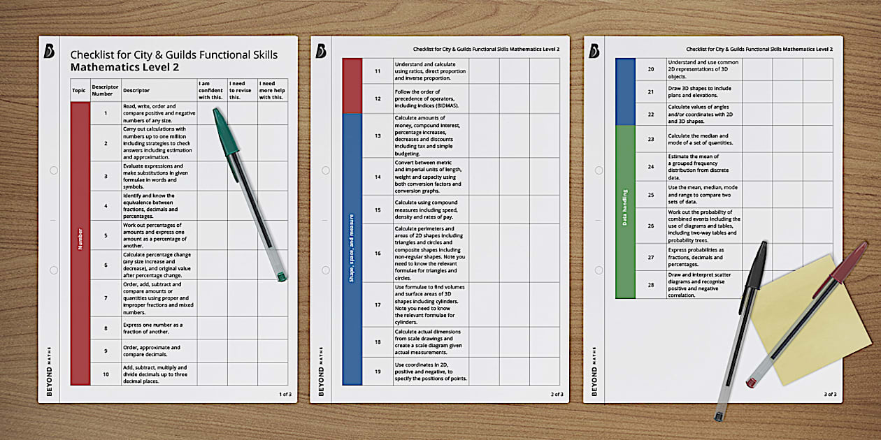 👉 Checklist for City Guilds Functional Skills Maths Level 2