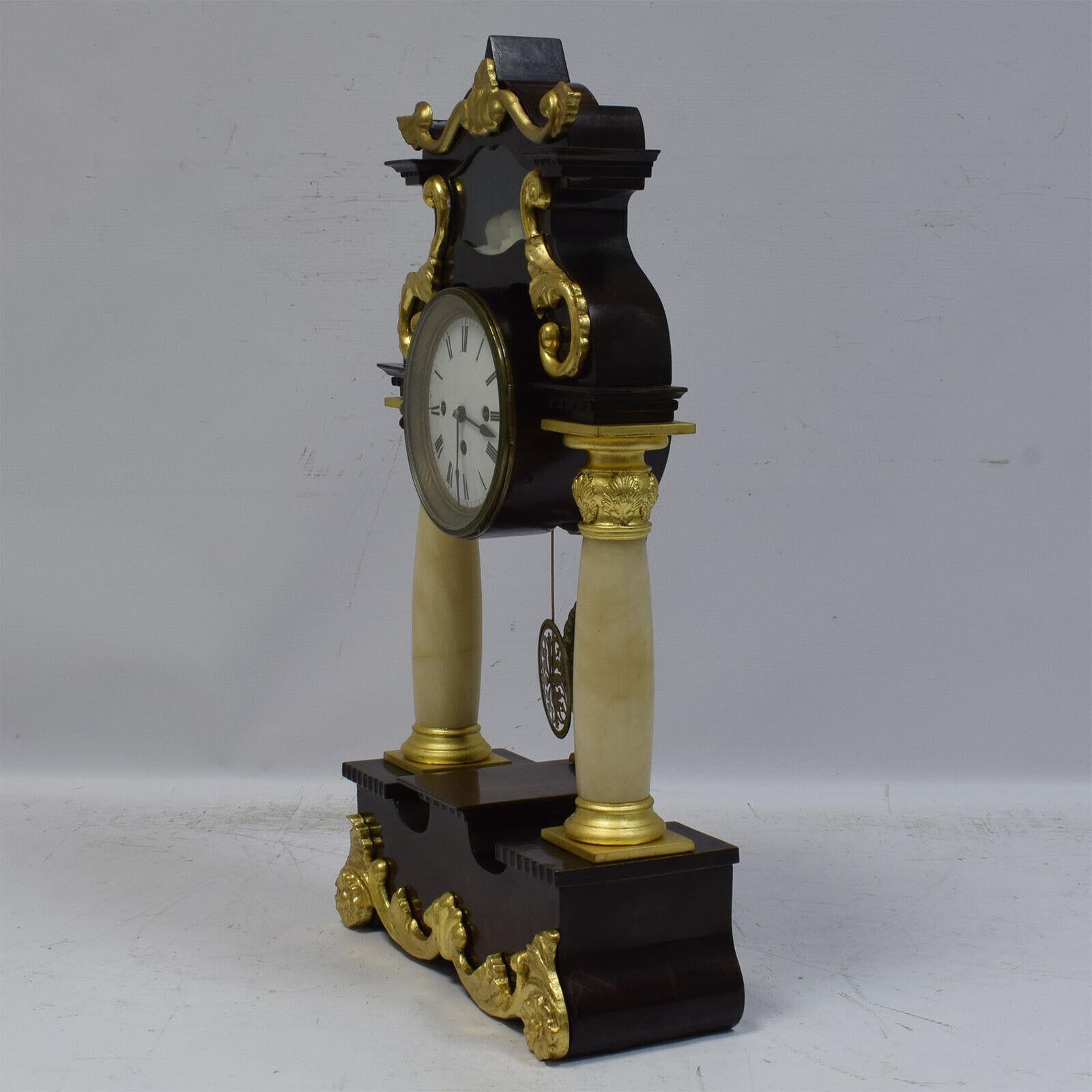 19th Century Functional Column Clock, Antique Mantel Clock with Portico ...