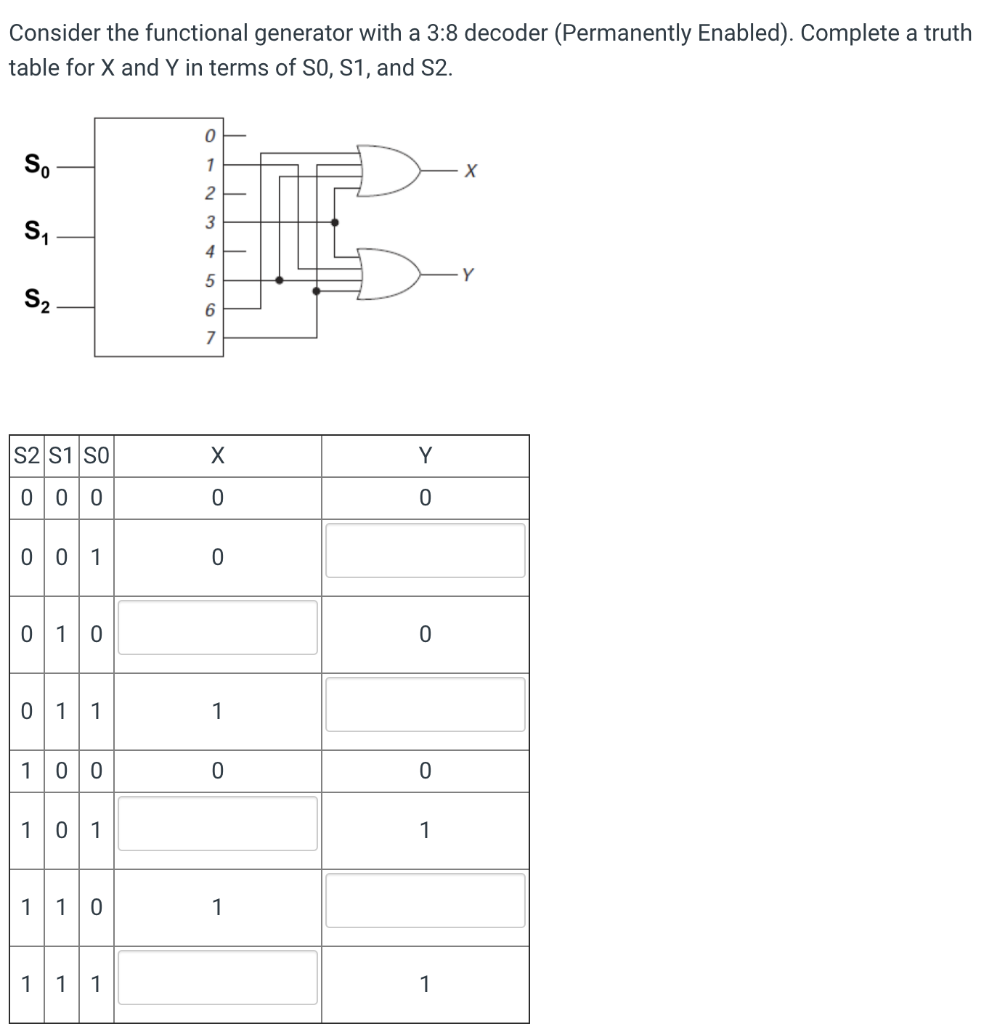 Solved Consider the functional generator with a 3:8 decoder | Chegg.com