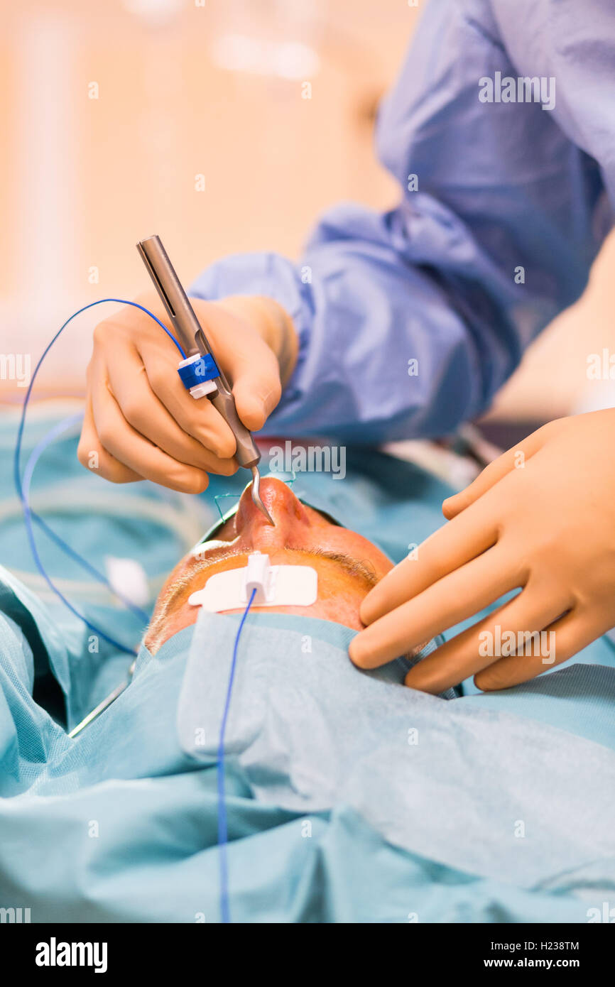 Sinus computer assisted surgery (neuronavigation). Surgeon performing ...