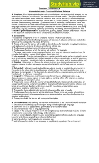 The functional-notional syllabus (Major characteristics (learner-centered…