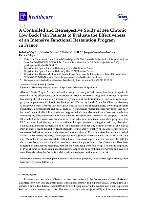 (PDF) Comparison of a Functional Restoration Program With Active ...