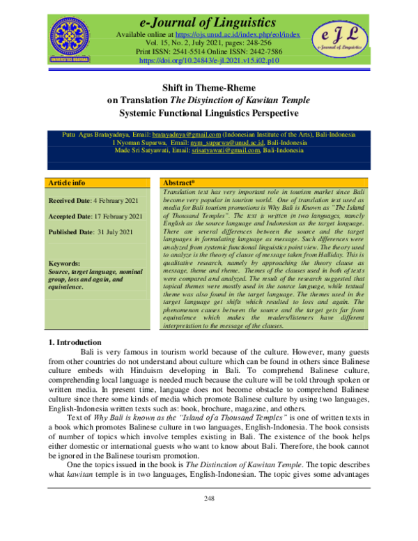 (PDF) Shift in Theme-Rheme on Translation The Disyinction of Kawitan ...