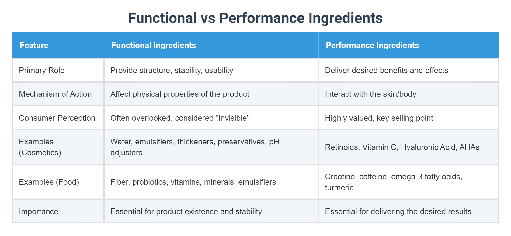 Functional vs Performance Ingredients