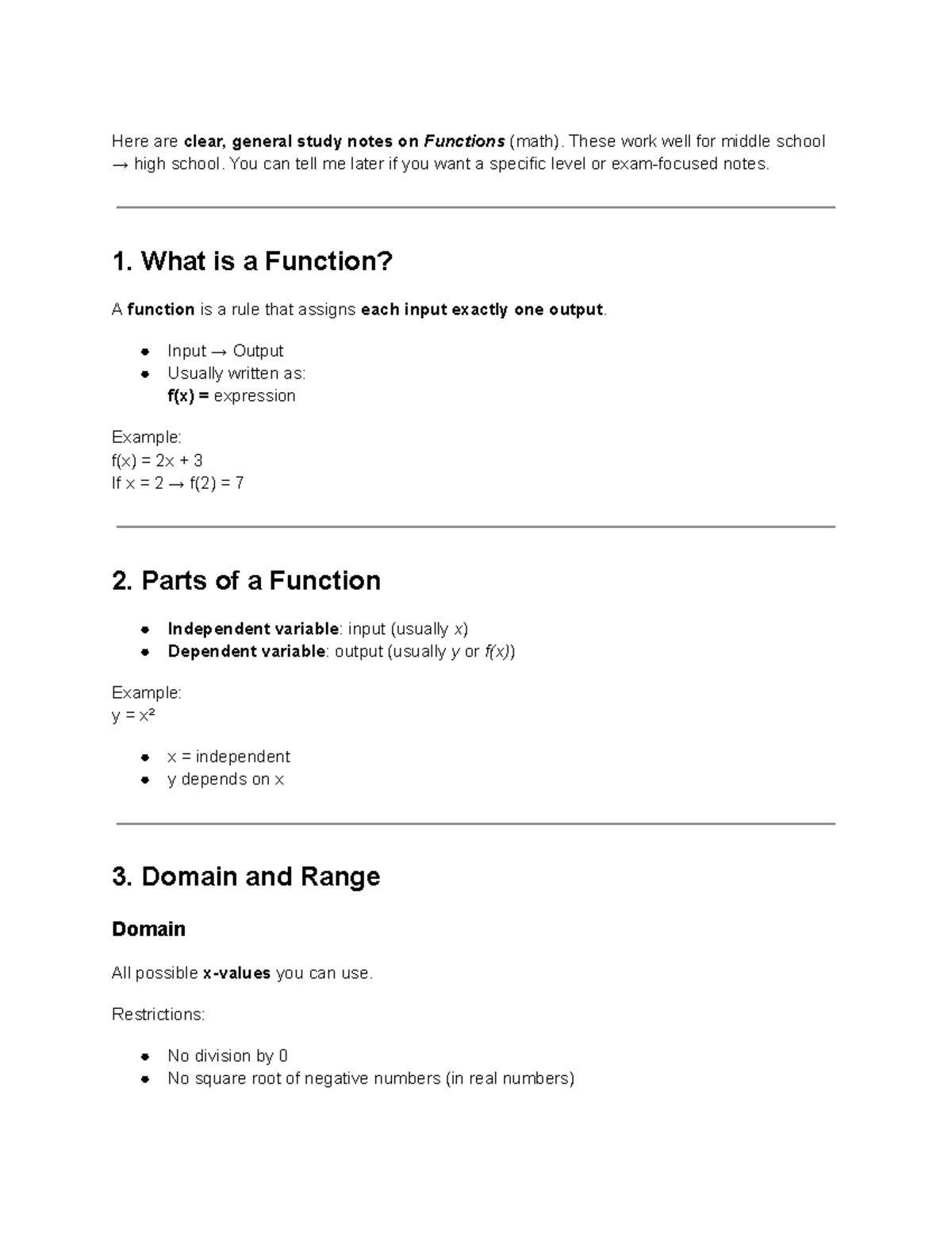 Functions Study Guide: Mr. Gilbert's Add Maths GTG IGCSE - Studocu