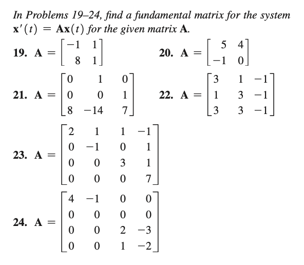 Solved In Problems 19-24, find fundamental matrix for the a | Chegg.com