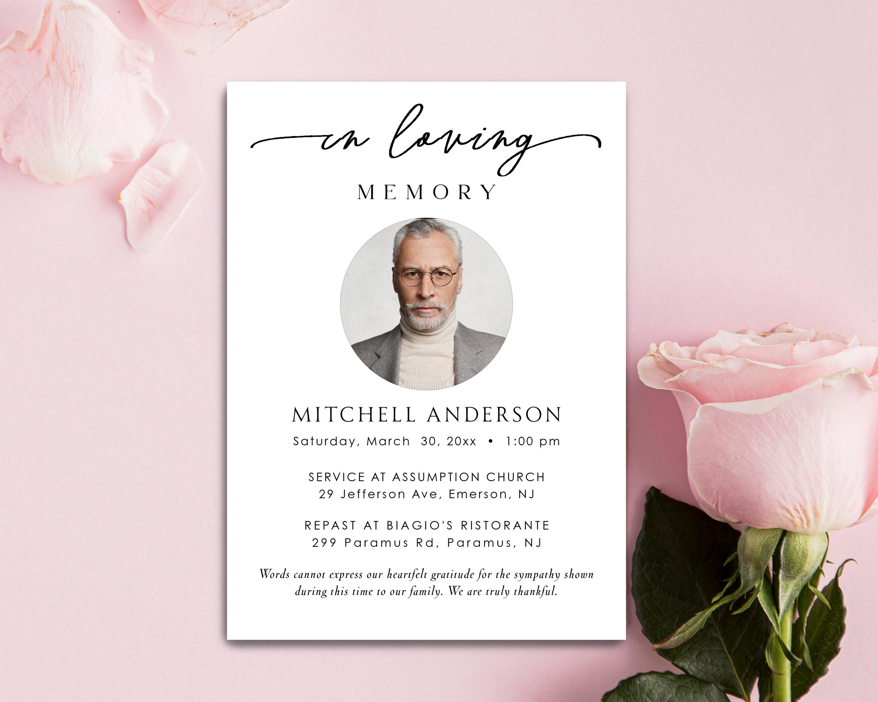 Funeral Announcement Card Template Funeral Invitation - Etsy India