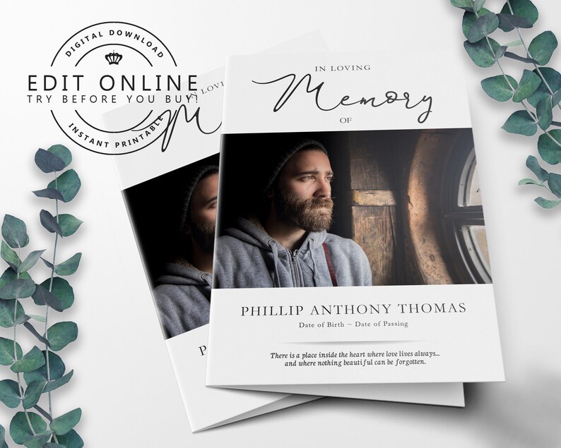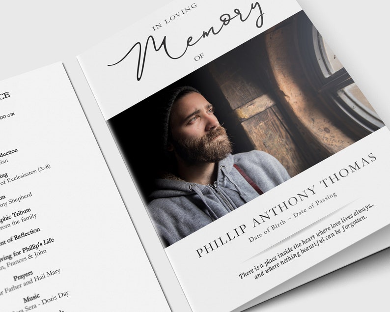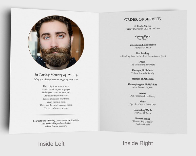 Funeral Program Template for Man and Order of Service. Modern | Etsy ...