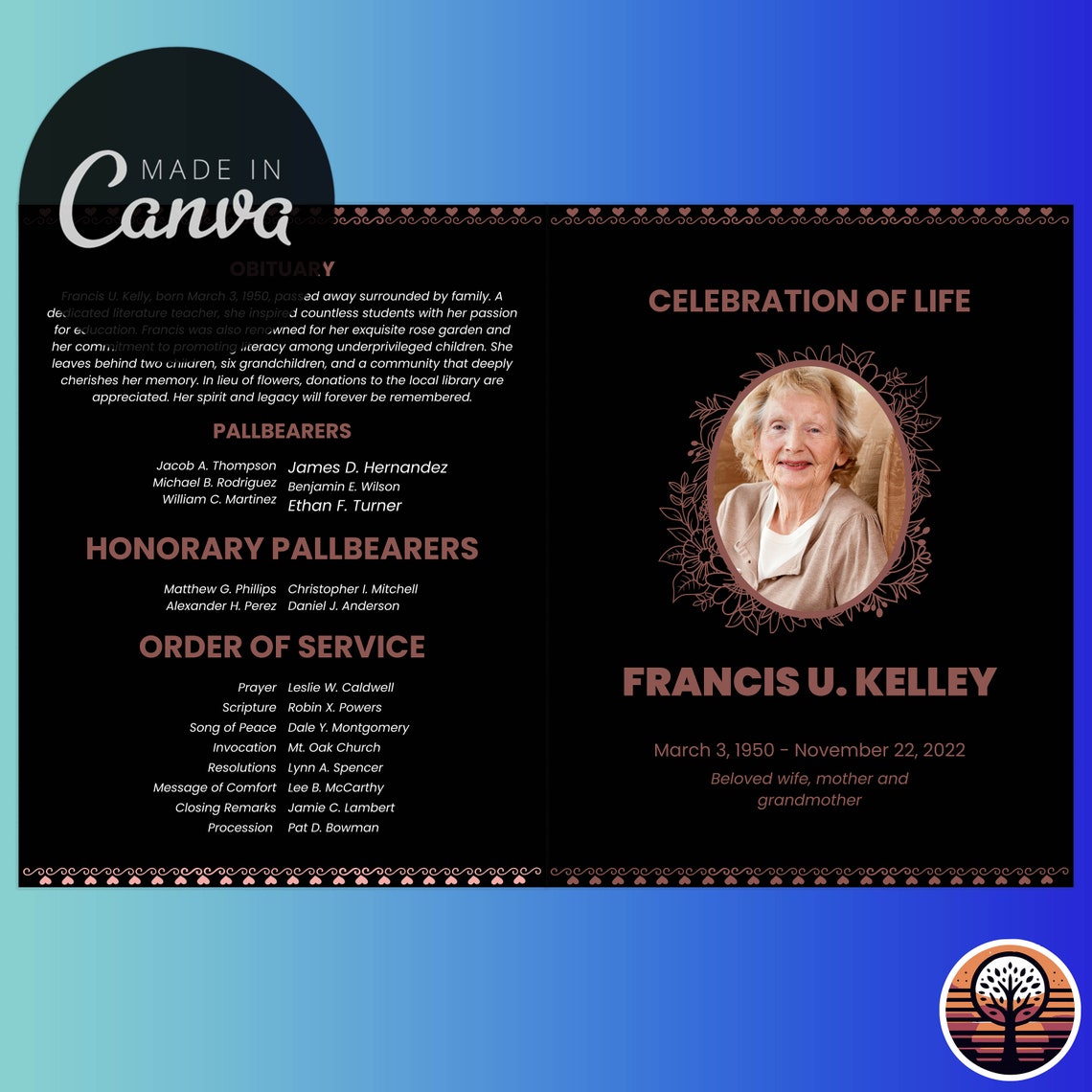Funeral Program Template Celebration of Life Obituary | Etsy