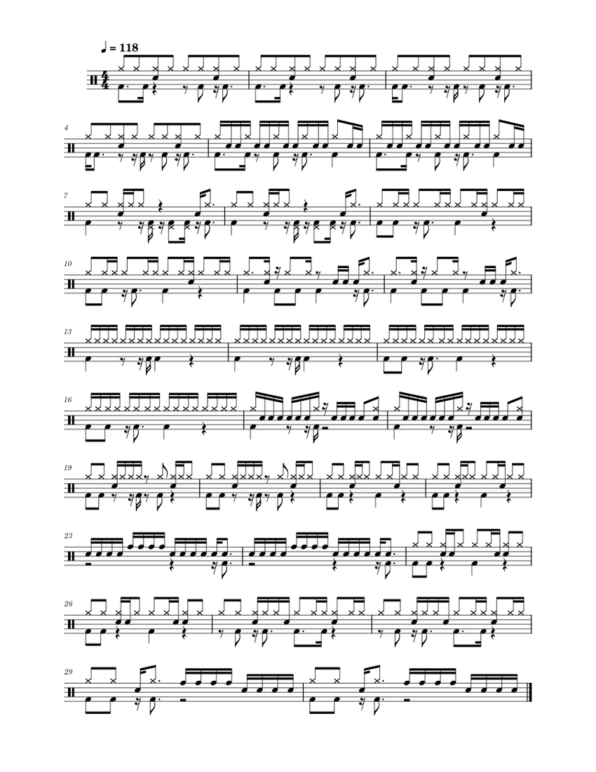 Funk Drum Pattern Sheet Music for Drum group (Solo) | MuseScore.com