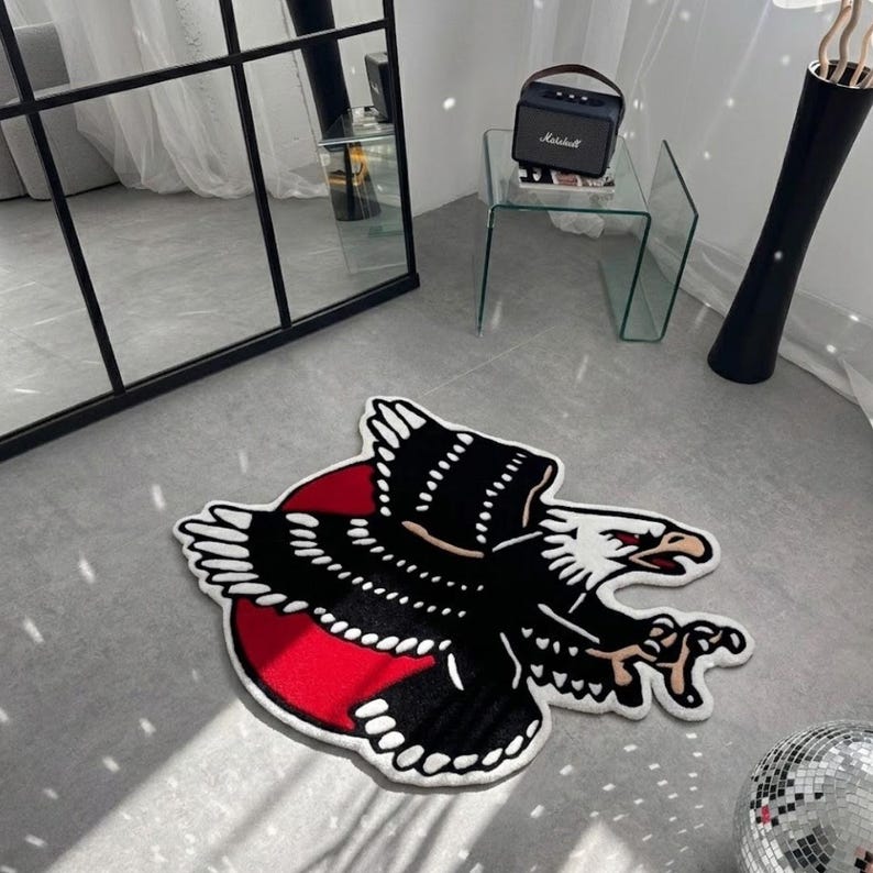 Cool Funky Eagle Rug, Tattoo Style Tufted Rug, Inked Art Area Rug for ...