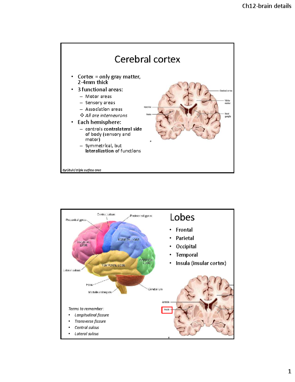 Ch12: Cerebral Cortex Overview and Functions - Studocu