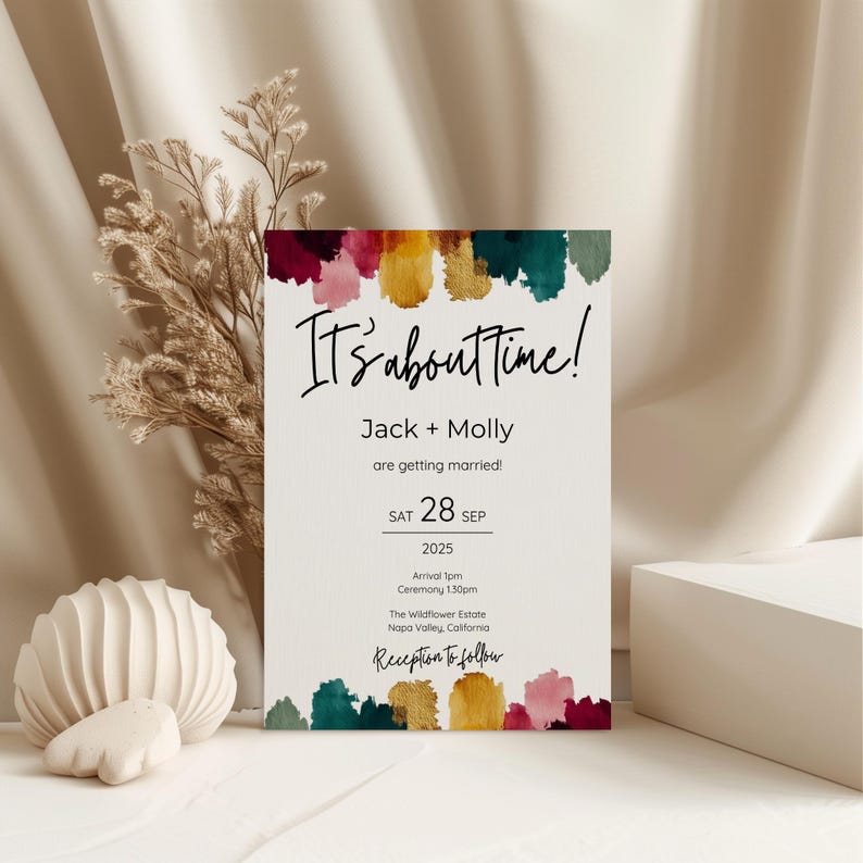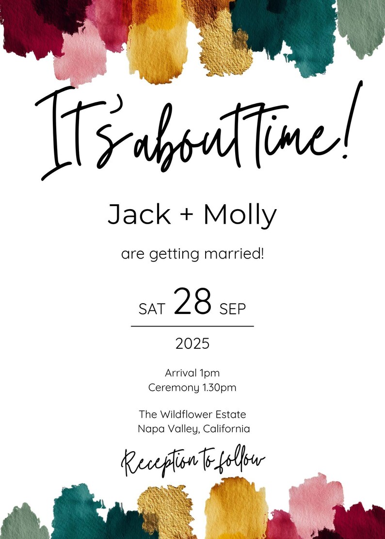 Funny Bold Watercolor Wedding Invitation Template | Modern Artistic ...