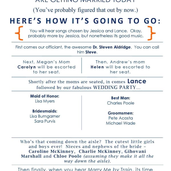 Wedding Program Infographic, Funny Wedding Program, Wedding Program ...