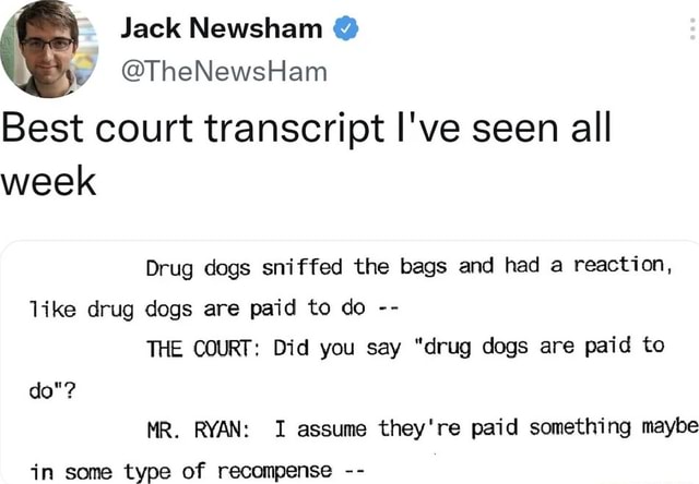 Jack Newsham @TheNewsHam Best court transcript I've seen all week Drug ...