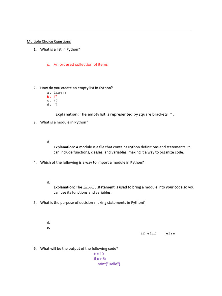 44 Python Learning Questions and Answers | PDF | Python (Programming ...