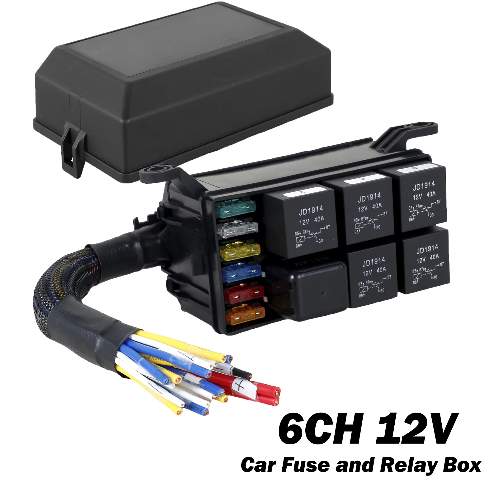12v Automobile Fuse And Relay Box With Pre-wiring 6-way Fuse Box ...
