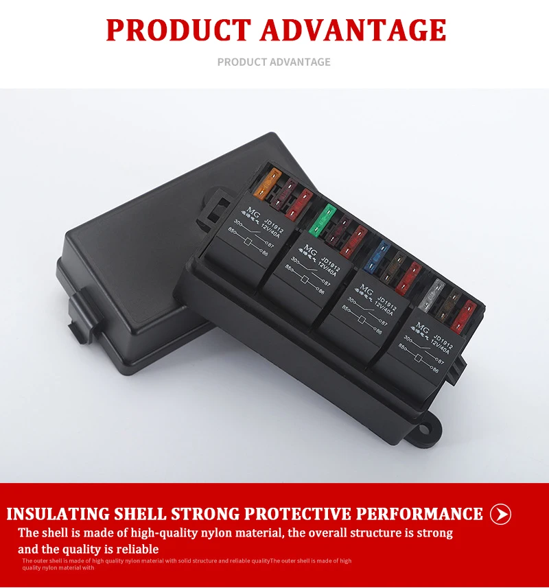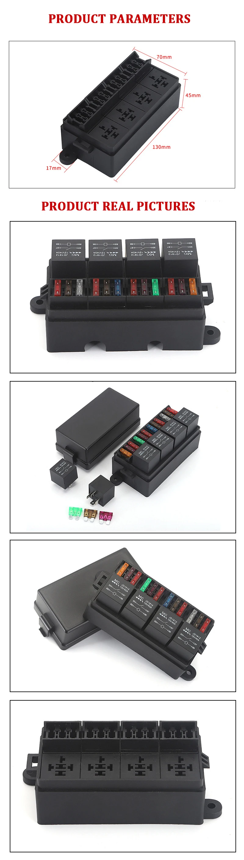 12V Car Fuse Relay Box Pre-Wired Fuse and Relay Box with 4 Relay 12 Way ...