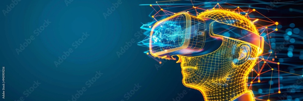 a digital figure wearing a futuristic virtual reality (VR) headset in ...
