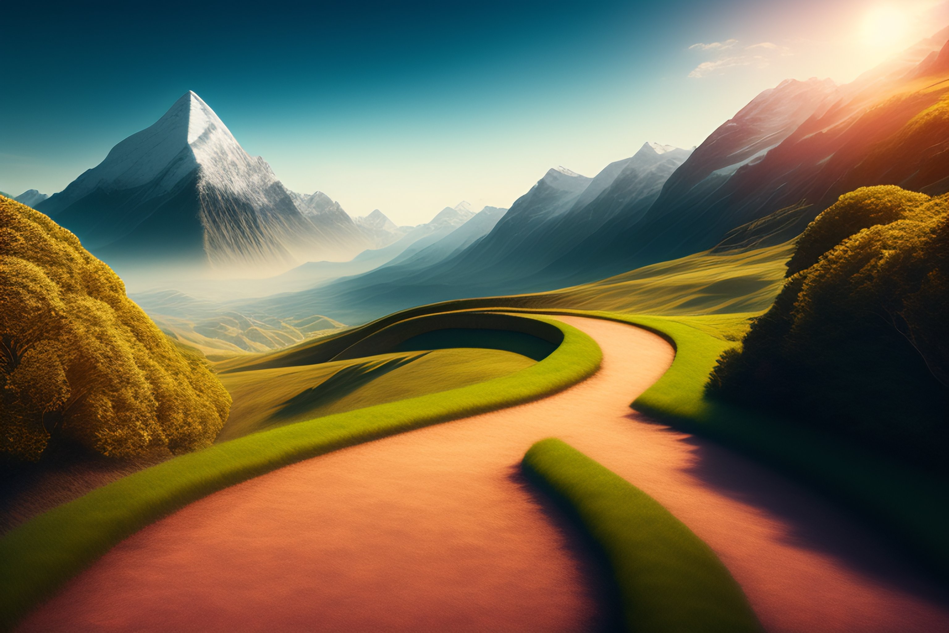 Lexica - Realistic image of a imaginatio winding path towards the ...