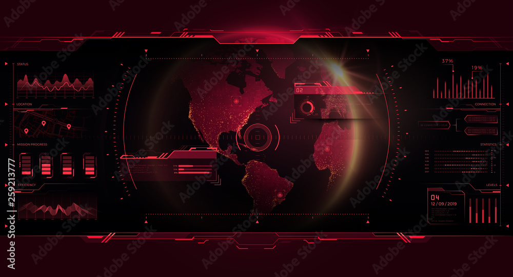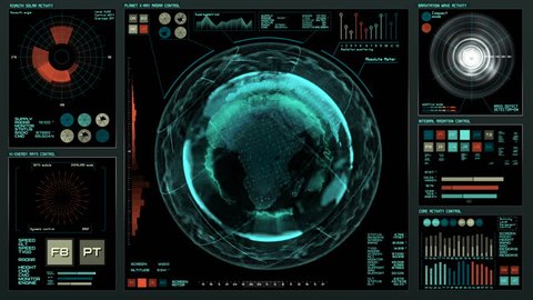 HUD UI GUI interface control center. Planet Earth in future futuristic ...