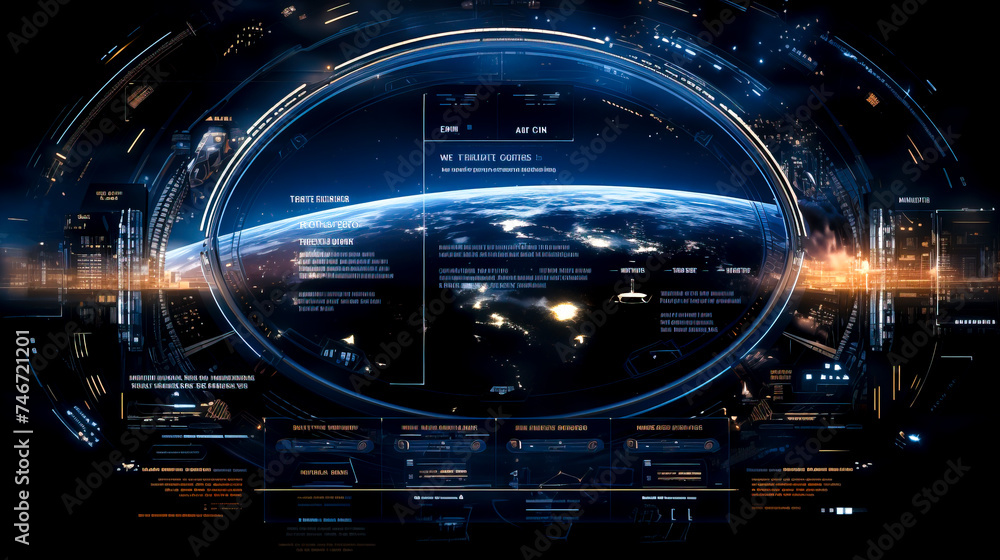 Futuristic user interface, game design, virtual technology, spaceship ...