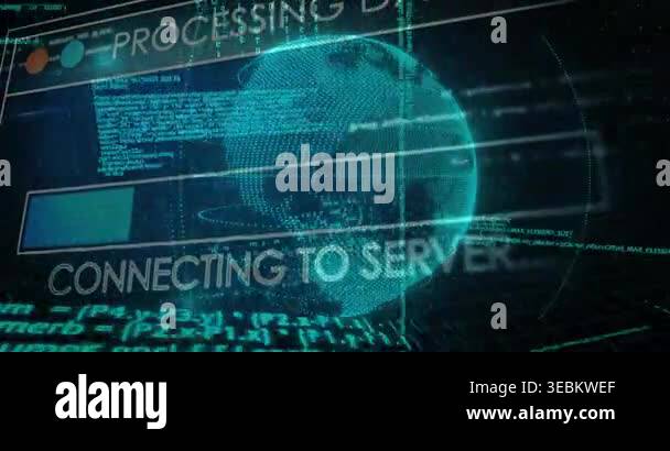 Processing header popping holo globe rotating and scanning while ...
