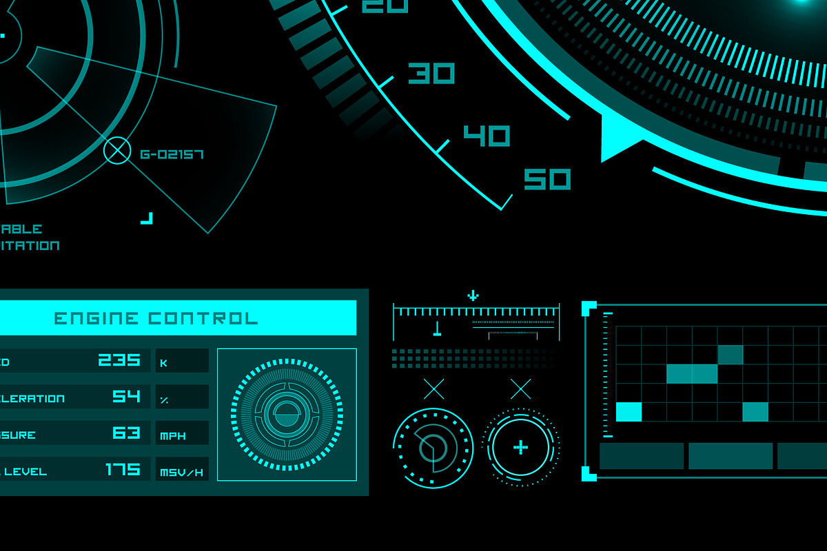 Futuristic user interface elements, a Technology Illustration by BeOGraphic