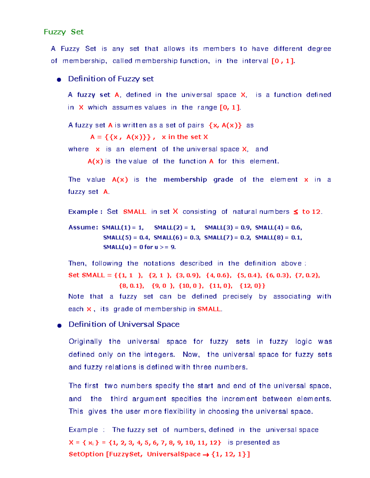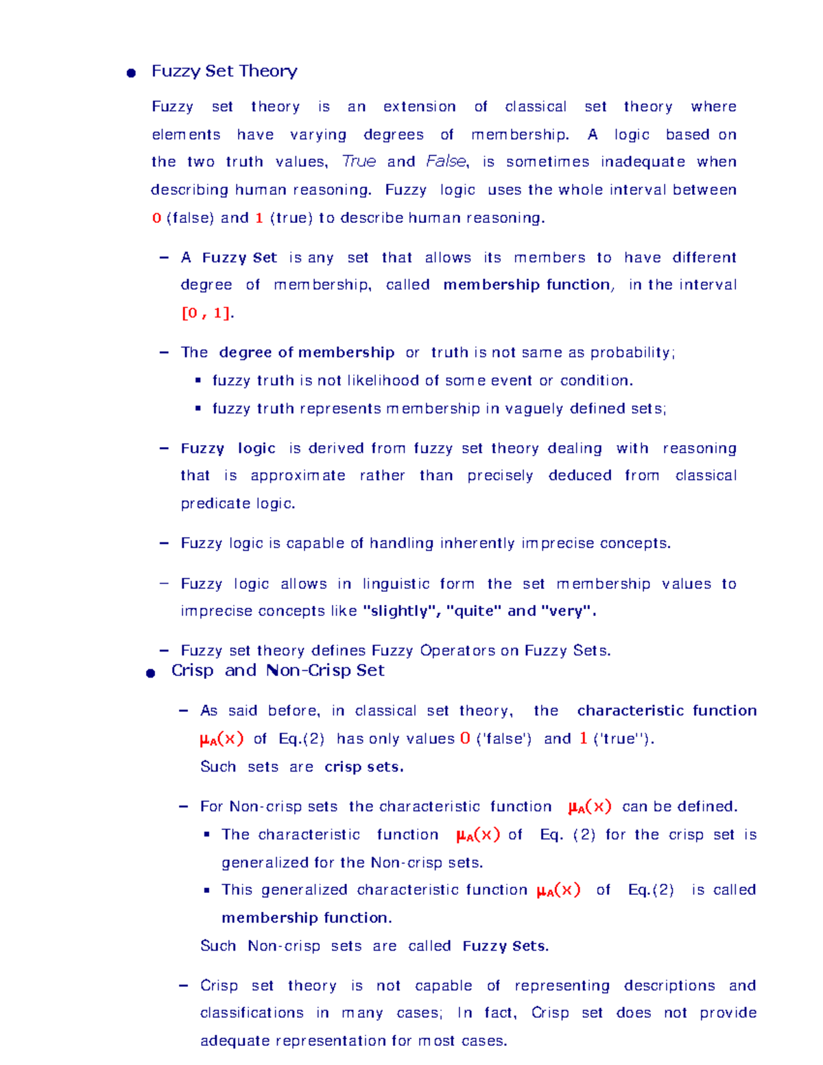Fuzzy Set Theory Notes