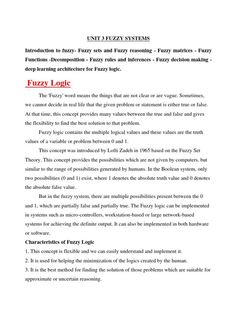 CS8086 Unit 3 - By www - its the notes - Introduction to Fuzzy Logic ...