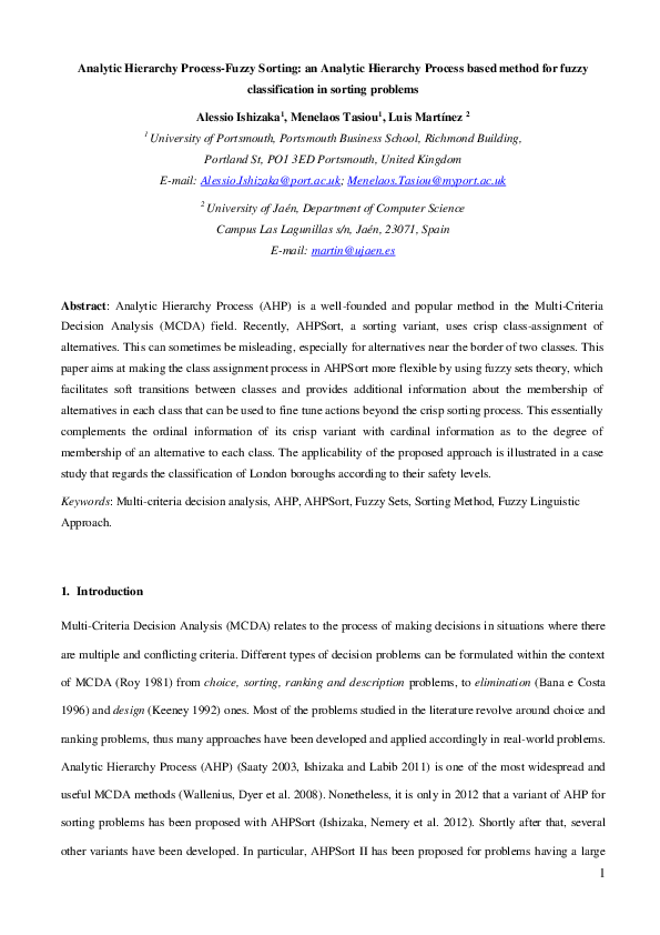 (PDF) Analytic hierarchy process-fuzzy sorting: An analytic hierarchy ...