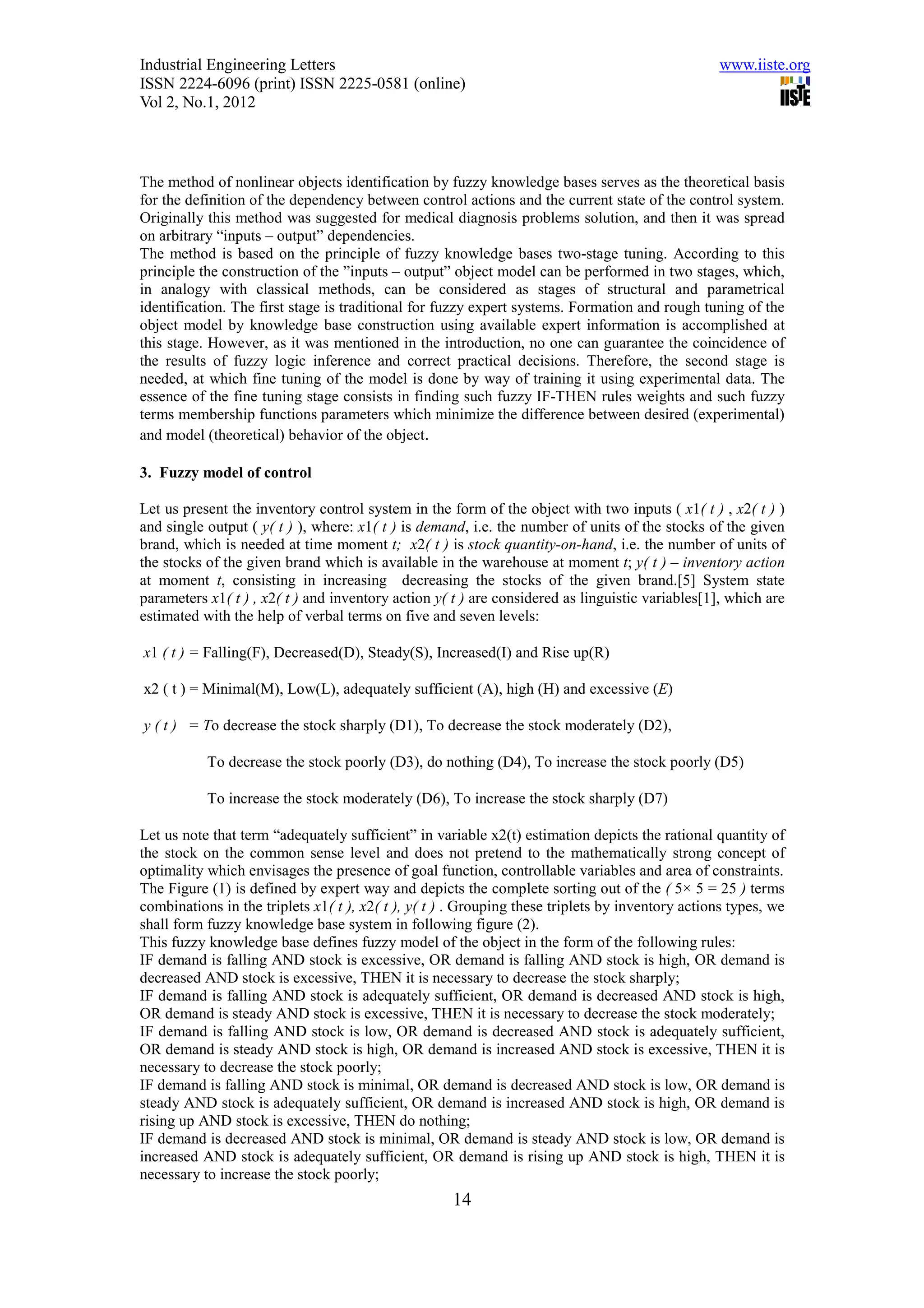 Fuzzy logic analysis based on inventory considering demand and stock ...