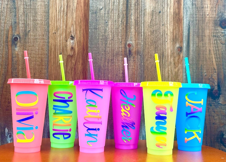 Rainbow Personalized Neon Party Favor Color Changing Cold Cups - Etsy