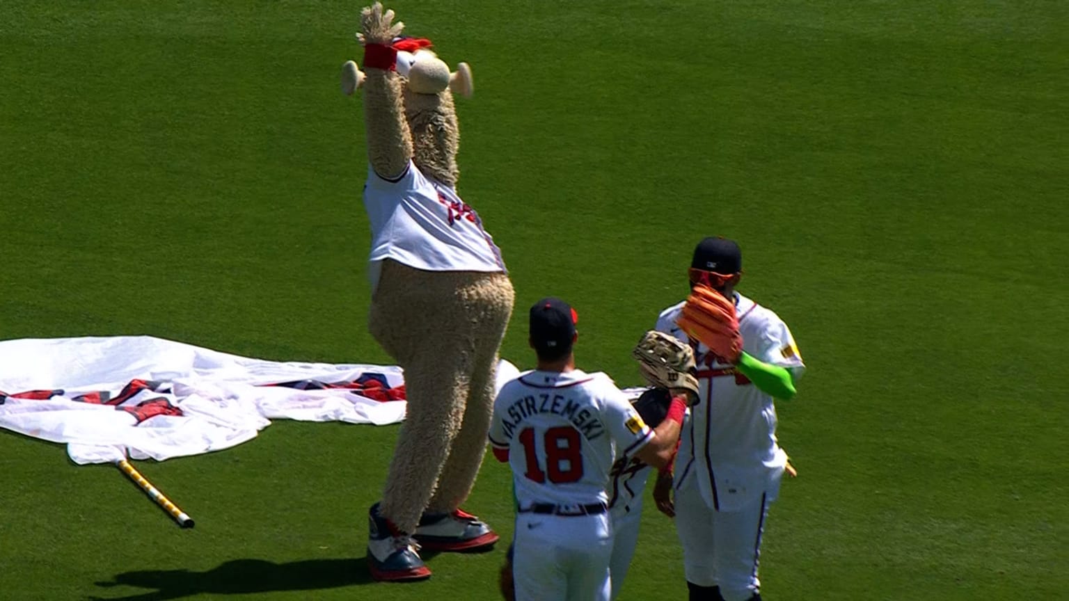 The Braves celebrate with Blooper after securing win | 04/01/2026 ...
