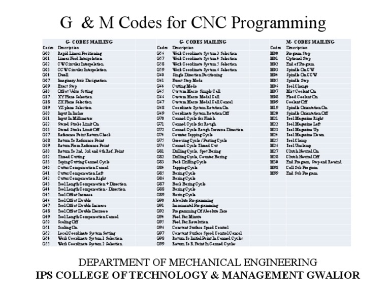 G Code And M Codes For Cnc Programming Pdf | Cnc programming, Coding ...