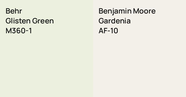 Behr Glisten Green vs. Benjamin Moore Gardenia comparison