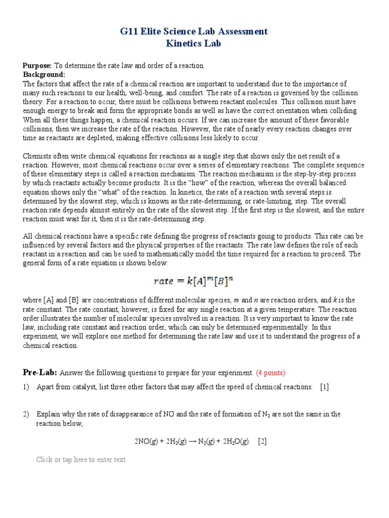 G11 Elite Science Lab Assessment Kinetics Lab: Purpose: Background ...