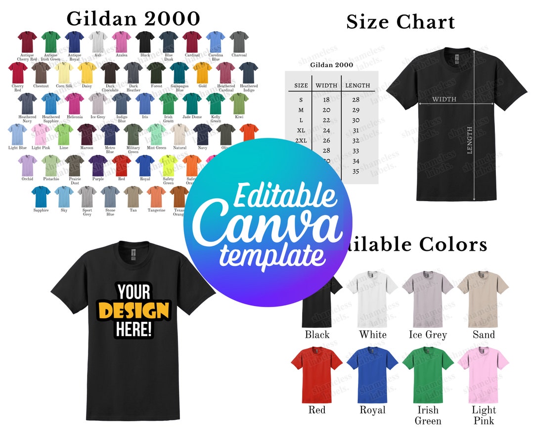 Editable Gildan 2000 Color Chart & Size Chart, Canva Template, G200 ...
