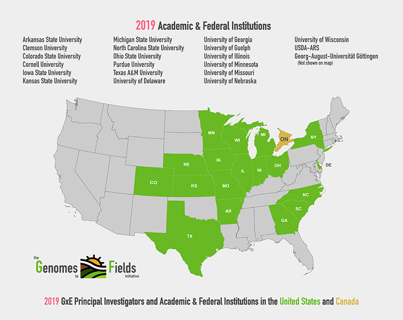 Genomes to Fields (G2F) locations in 2018. Researchers managing G2F ...