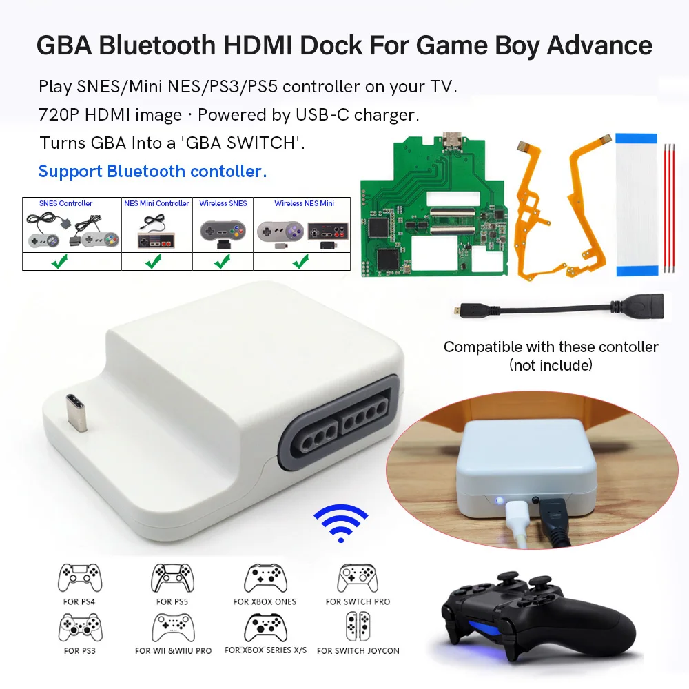 Hispeedido 720P HDMI GBA Bluetooth Dock Kit V2 For Game Boy Advance ...