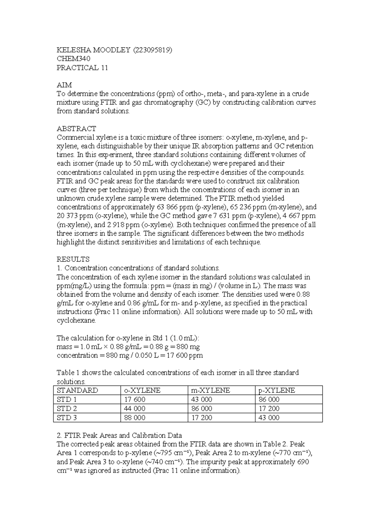 Chem340 Practical 11: Analyzing Xylene Isomers via FTIR & GC - Studocu
