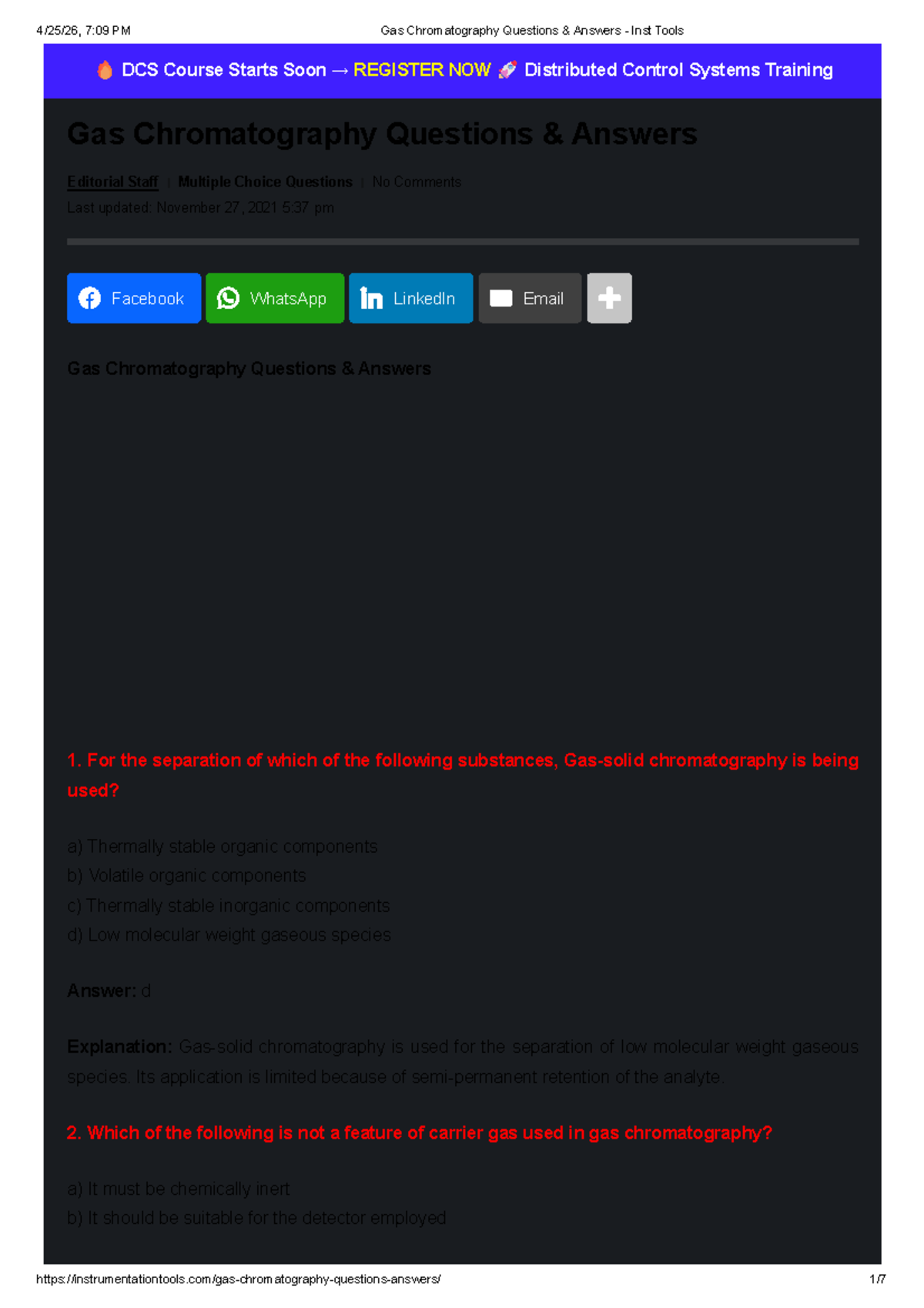 Gas Chromatography Q&A for DCS Course - Study Guide - Studocu