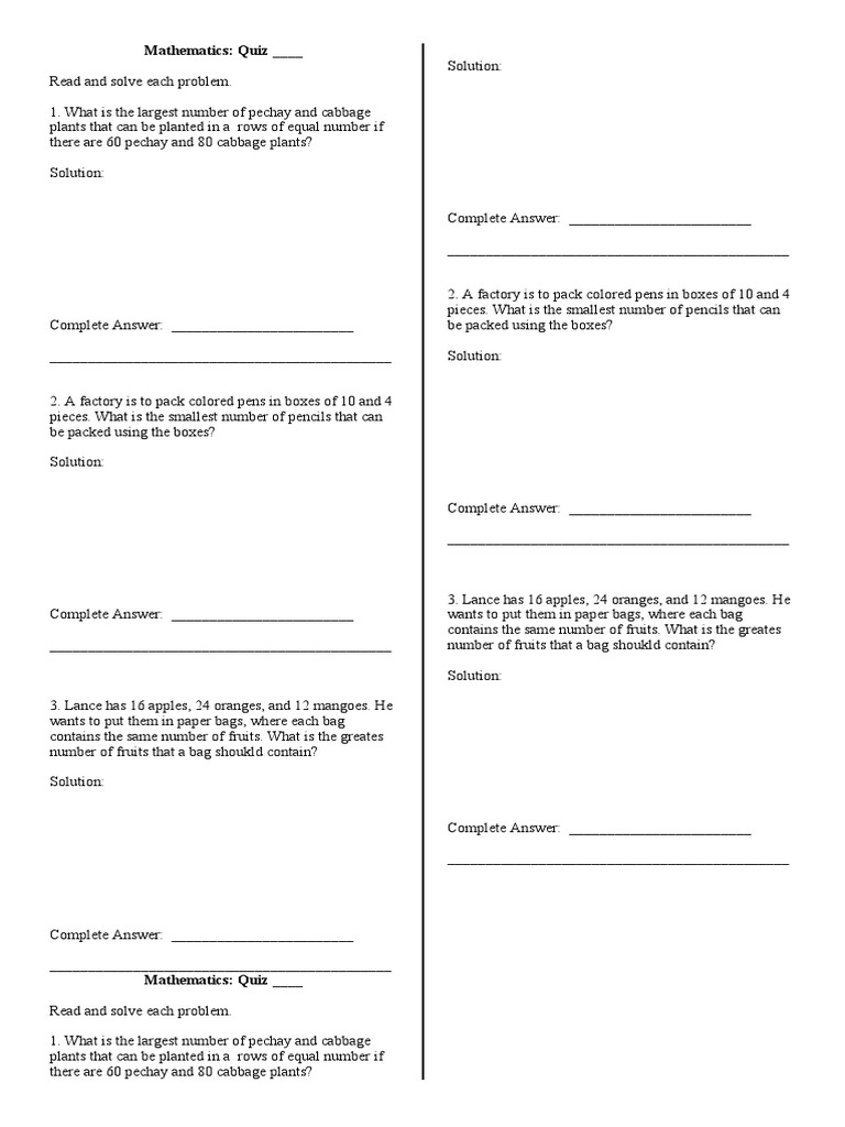 Greatest Common Factor and Least Common Multiple Word Problems ...