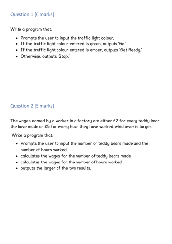 Exam Style Python Programming Questions (GCSE AQA) | Teaching Resources
