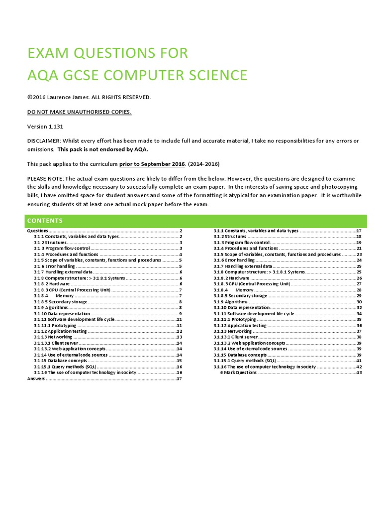 GCSE Computer Science Exam Questions and Answers | Exams Computer ...